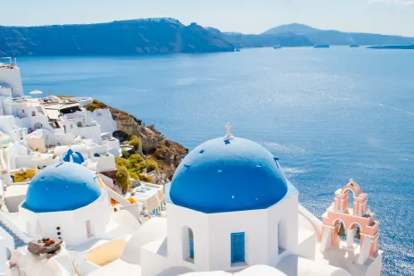 When travelers plan a Greek Isles cruise, visiting Santorini is often at the top of their bucket lists. This picture-perfect island is where white-washed buildings cling to dramatic cliffside landscapes. Spend your day exploring the charming villages of Fira, the capital, and Oia's blue-domed churches and narrow alleyways.