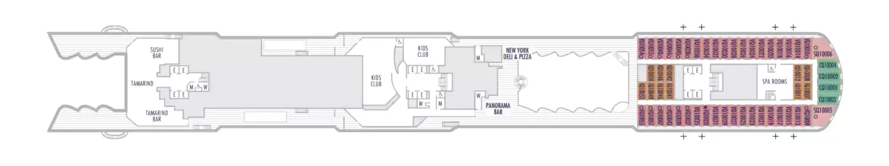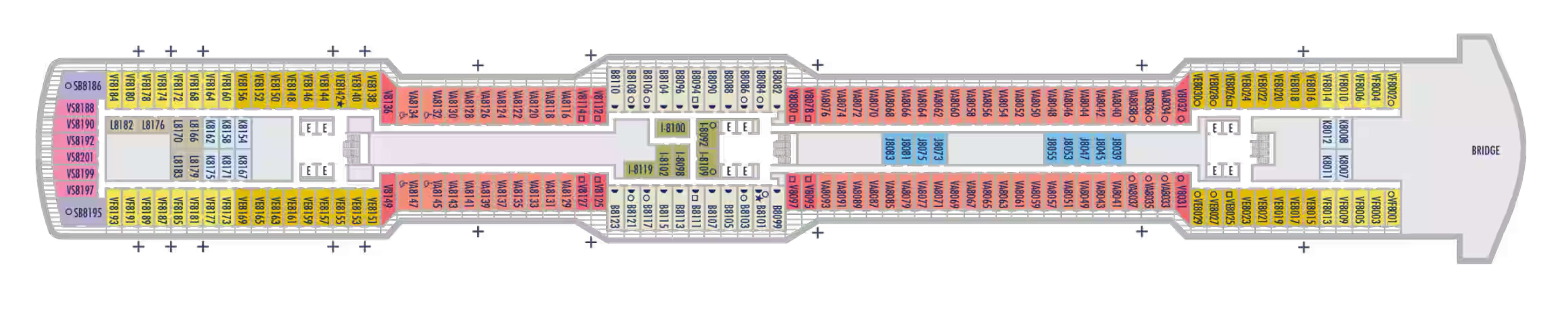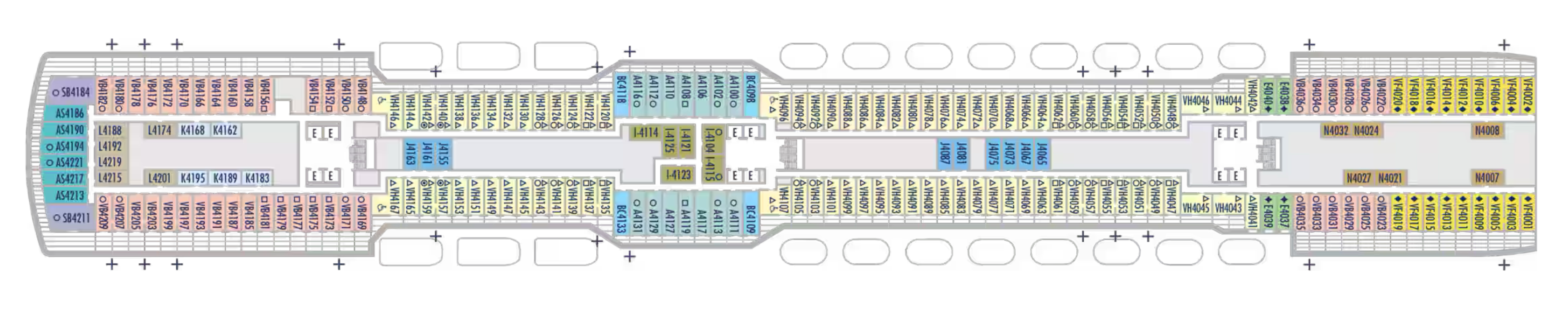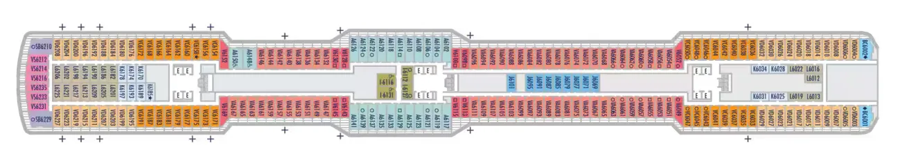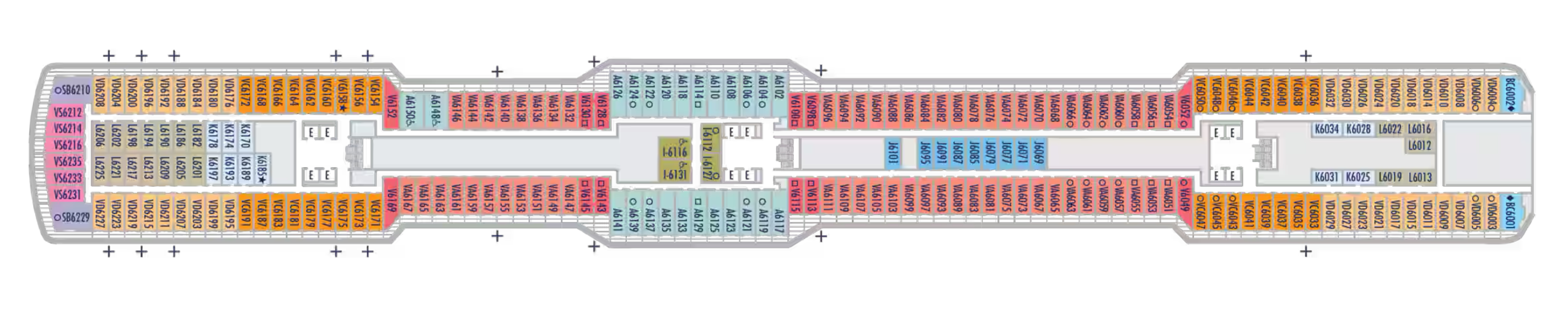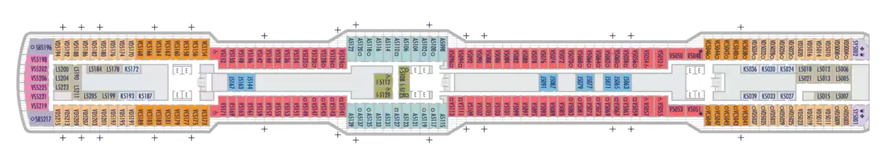 - Less ocean movement and proximity to Lower Promenade dining and entertainment.