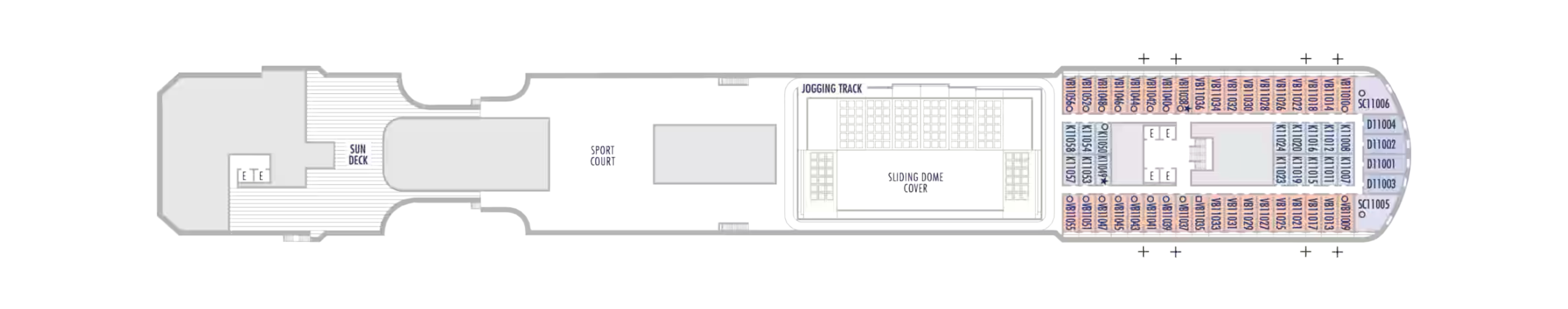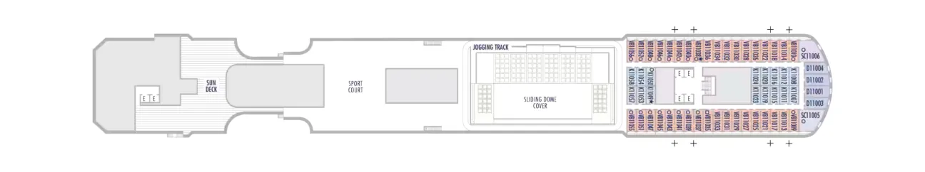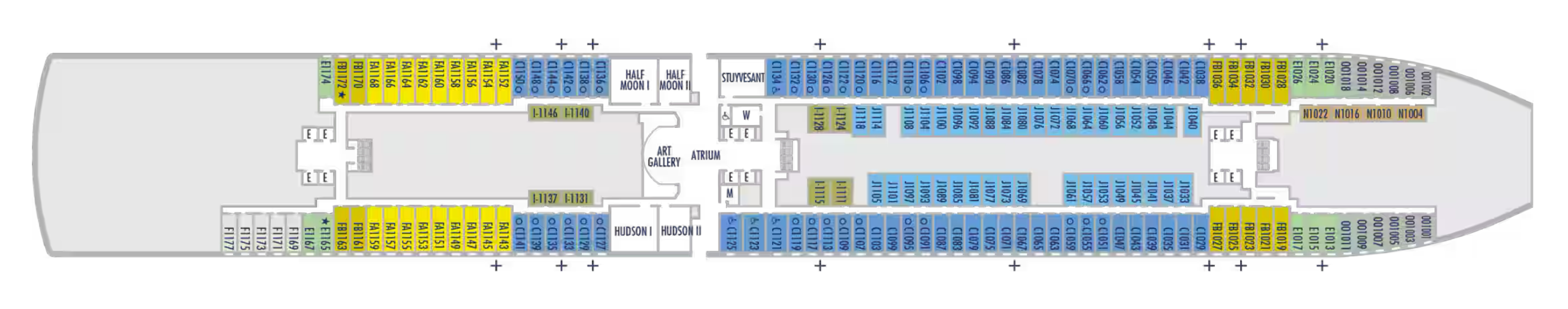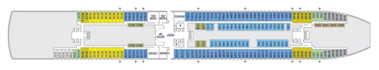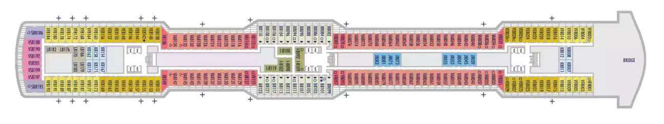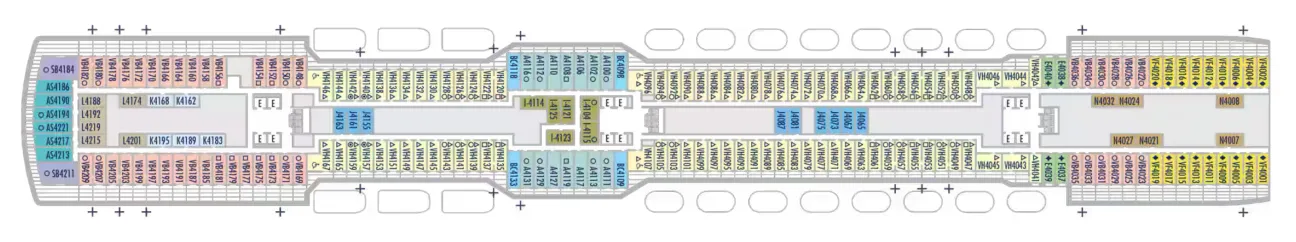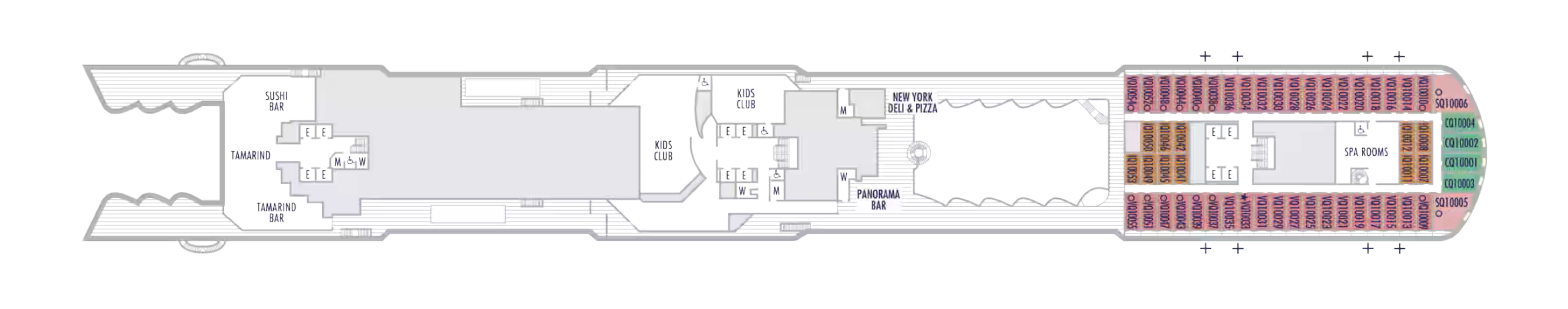 - Less ocean movement and proximity to Lower Promenade dining and entertainment.