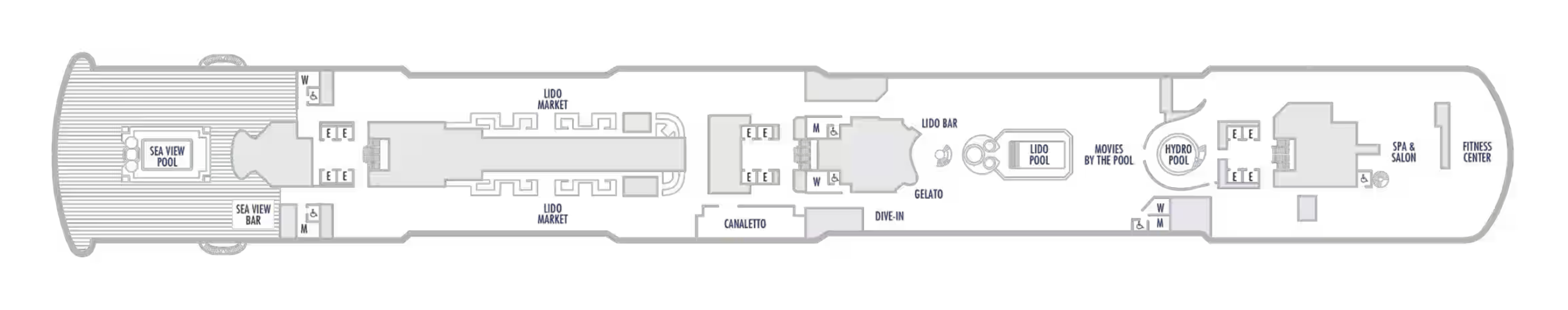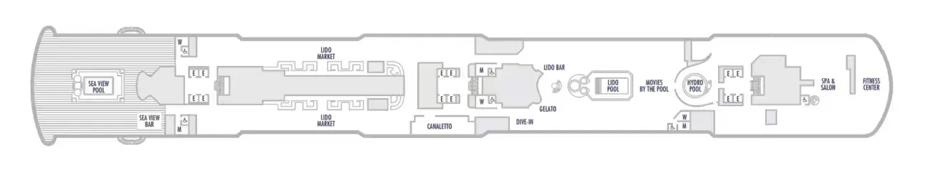 - Get easy access to the Lido Market, Fitness Center and Greenhouse Spa & Salon located two decks up.