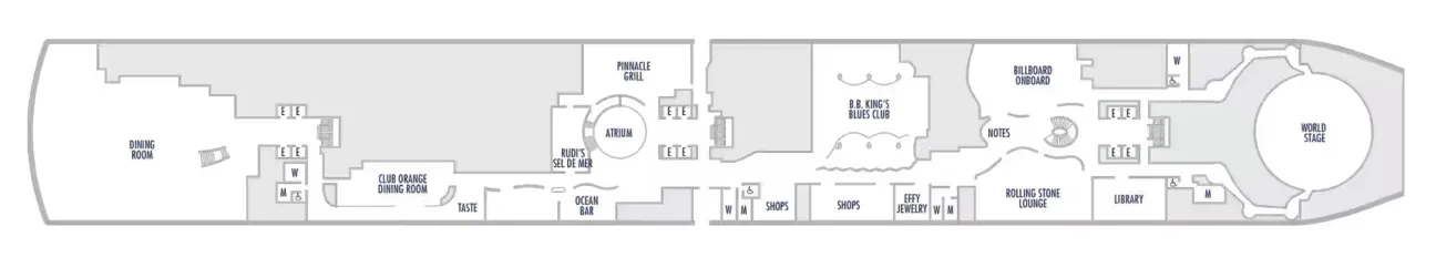 - World Stage features innovative cruise ship shows and a two-story LED screen that creates a vivid wraparound display.