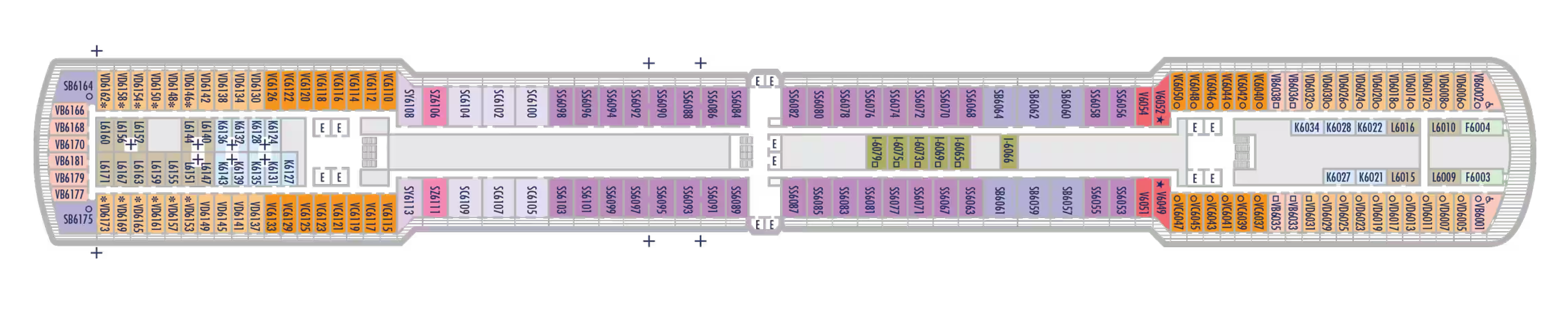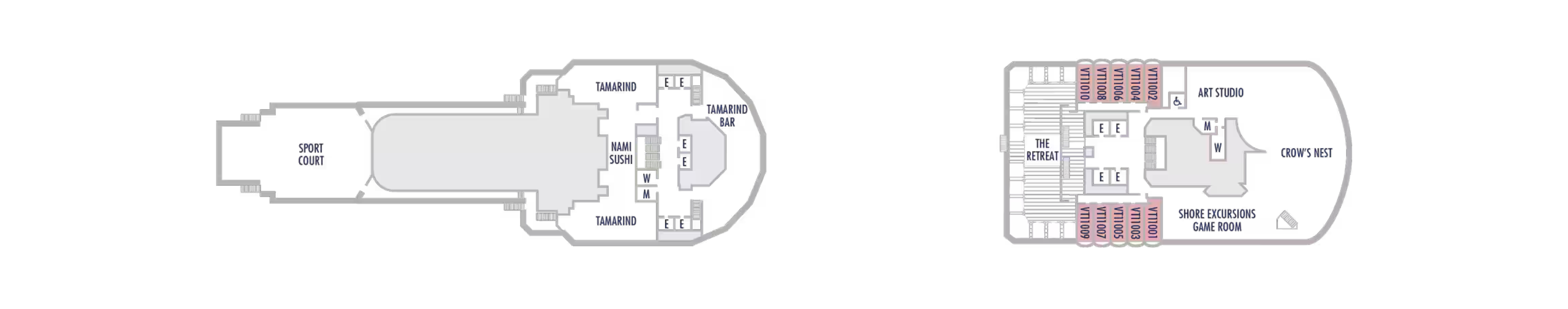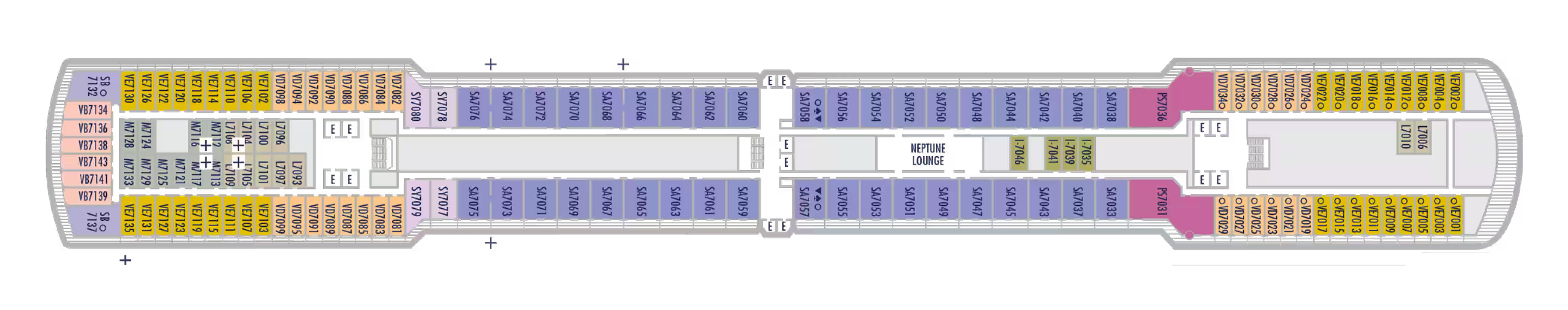 - Less ocean movement and proximity to Lower Promenade dining and entertainment.