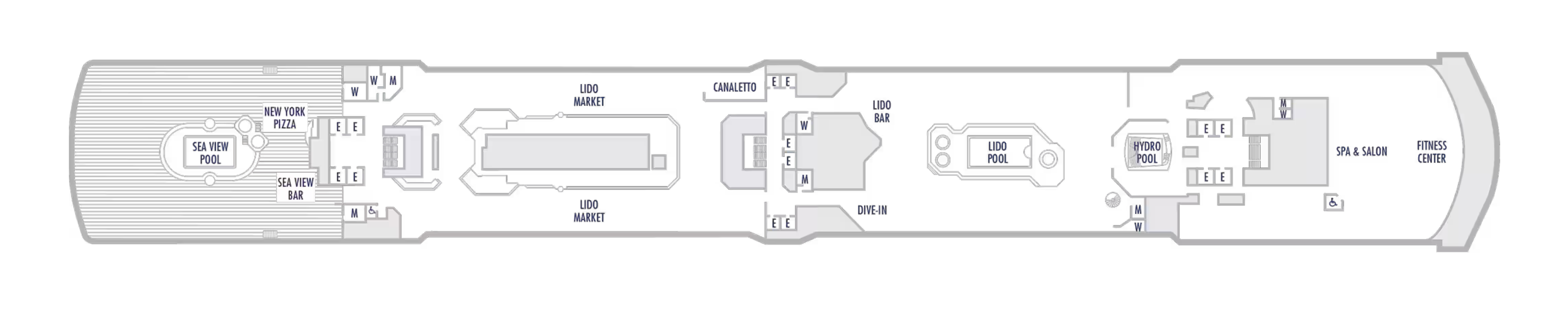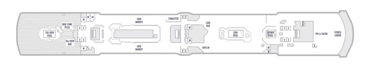 - Get easy access to the Lido Market, Sea View Pool and Spa & Salon located two decks up.